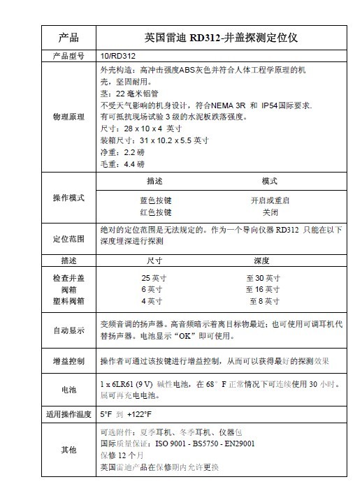 1.井盖定位仪 RD312可能含有禁忌内容或者注意事项,具体详见说明书;