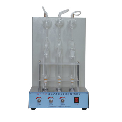 SYD-380石油产品硫含量试验器*大的特点是:3路试样可同时测试,各路抽气量大小、酒精灯高低位置均独立可调,全不锈钢结构经久耐用。