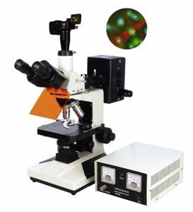 数码荧光显微镜利用荧光显微技术,配置了B、G二组激发组,在显微镜上观察标本的荧光现象具有极高的敏感度,可以清楚地观察和鉴定用普通显微技术难以观察到的染色体标本,作为一种研究方法或实验手手段,广泛应用于生物等技术领域中。落射荧光显微镜适用荧光显微术和明视场观察,是生物学、细胞学、肿瘤学、遗传学、免疫学等研究工作的理想仪器。
