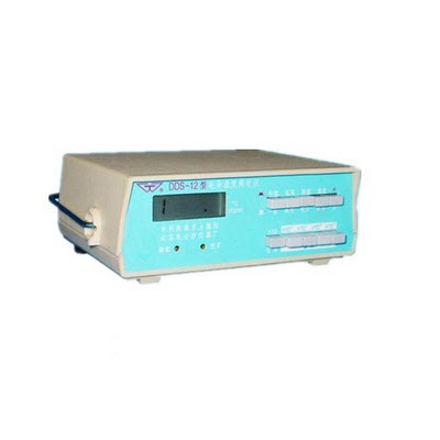 DDS-12型电导温度测定仪利用集成温度传感器测量温度,并对电导进行温度自动补偿。采用两块平行放置的铂片作为电导电极,通过测量两铂片间溶液的电导值,计算出被测溶液的电导率。
