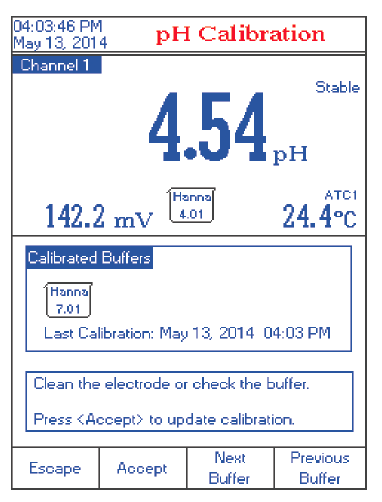 ? 清洗电极、检查标准缓冲液提醒;