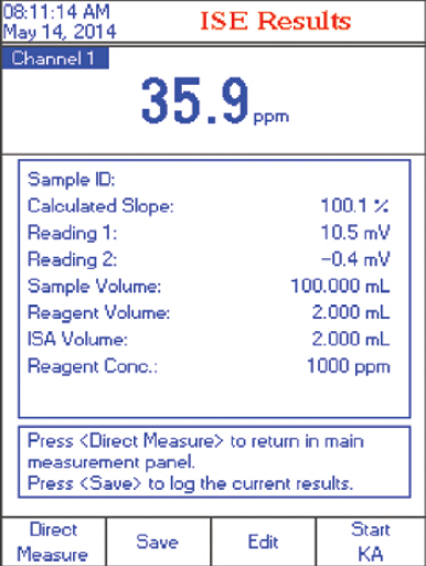 ISE范围:1.00 x 10-6 to 9.99 x 1010 离子浓度单位