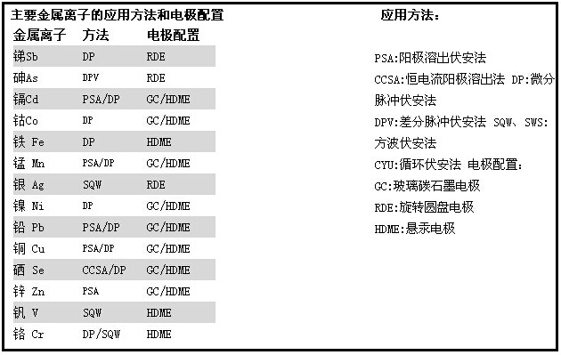 元素的还原电位这一电化学技术可以用来测定溶液中痕量金属的浓度,在检测痕量金属时,要根据底物中元素的存在状态对样品进行适当的处理,此外金属样品的浓度决定了取样量的多少,用定义好了的负电位将进样的元素转化成它的金属态。在发生电化学反应的电池中**须要有支持电解质,电解质的存在可以使电荷在石墨电极附件发生迁移,此电解质一般是酸溶液。这种电位溶出技术非常灵敏,痕量金属的检出限低于ppb级。注意:Ag/AgCl电极(参比电极)和铂电极组成闭合回路,它们作为标准电极使用。