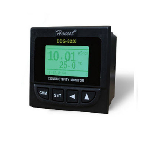 DDG-8250型智能型电导率监控仪是一台采用单片机进行测量和补偿的智能型电导率测量控制仪器,采用中文菜单式提示操作。具有电导率测量、全自动温度补偿、监视控制功能。本机同时具有标准隔离型4-20mA电流信号输出,电导率上下限报警输出,RS-232通讯接口输出等功能。配套我厂DY-301B型电导(电阻)率打印机,可以实现测量数据的打印记录,广泛适用于电子、化工、制药、机电、核能、饮用水等制水设备工业在线电导率的测量和监控。本仪器采用开孔插入式安装,具有补偿范围宽、测量准确稳定、使用及安装方便等特点,是电导率测量和监控的新一代智能型仪器。