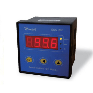 DDG-230型电导率仪是我公司CM-230型电导率监视仪的升级换代产品,在保持原有产品性能的基础上,采用单片机数字化电路进行测量和温度补偿。该产品广泛适用于反渗透、海水淡化、电渗析等水处理设备在线的电导率测量和监控。具有使用更方便,操作更简便,性能更完善等特点。