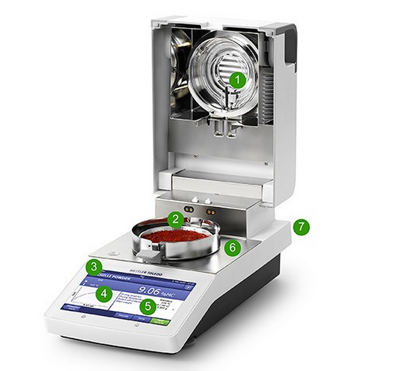 1. 卤素灯加热 - 在 40-230 oC 之间实现准确的温度控制 2. 高性能称量传感器 – 准确获得水分结果 3. 清晰明亮的触摸屏 – 易于阅读 4. 实时的干燥曲线 - 进程概览 5. 图形化用户指南 – 方便所有人的直观操作 6. 平整的不锈钢表面 - 结构坚固,易于清洁 7. RS232 和 USB 接口 - 便捷的数据传输 限量版迷你快速水分测定仪 U 盘钥匙环