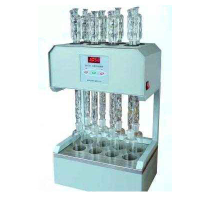 消解器采用微机技术进行定时控制加热电炉,可对8,12个24号标准磨口的柱形瓶回流装置同时进行加热。达到节能、减低电力负荷、提**率的目的。采用玻璃毛刺回流管代替球形回流管,并以风冷技术取代自来水冷却方式,既可以节水又能使仪器规范化,同时还提高了仪器使用的**性。