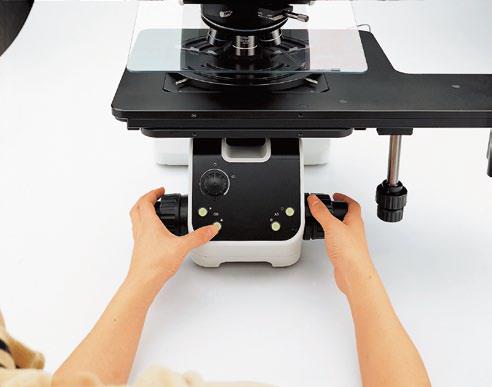 物镜转换和AS(孔径光阑)调节按钮均位于显微镜的前下方。这种设计不仅使用起来更加方便、舒适,而且用户在使用时,无需让手松开调焦旋钮或将眼睛离开目镜。