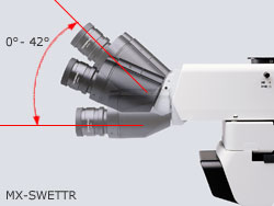 备有2种能以舒适姿势观察的倾斜镜筒。可以根据用途选择双目部倾斜角度由水平0°到42°的、变化范围大的MX-SWETTR型号,或是目视和拍摄影像可同时观察的U-SWETTR-5型号。