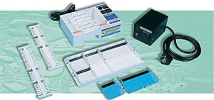 采用内置直流电源,可直接使用 110 伏或 220 伏交流电(随机配备转换变压器)。盖子和移胶板均为工程塑料,耐腐蚀,强度高;铂金电极,使用寿命长适用于琼脂糖和聚丙烯酰胺凝胶体。整个仪器体积小、重量轻,携带方便,操作简便。